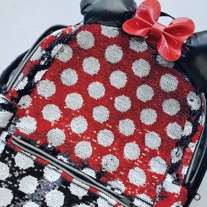 Disney Parks reversible sequin Minnie Mouse backpack with bow and Mickey Mouse ears