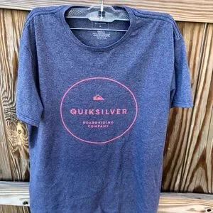 Quiksilver graphic tee with pink logo . Board riding company surfing shirt, Short sleeve, crew neck, chest measures 21 inches length-26 3/4 inches, excellent condition.