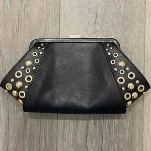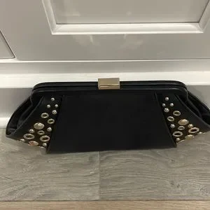 Excellent Condition WHBM Clutch/Shoulder Black Grommet Studded Bag