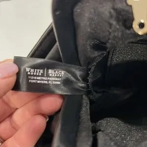 NWOT-WHBM Black Faux Leather Grommet Studded Clutch with Detachable Gold Chain Shoulder Strap. Top snap closure with one inside pocket.8 1/2” Wx 6 1/2” -Lots of room for large phone and all incidentals!