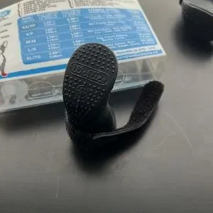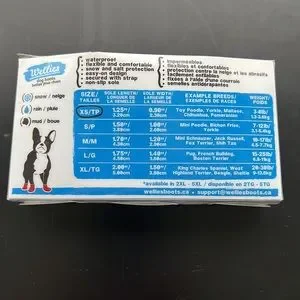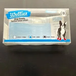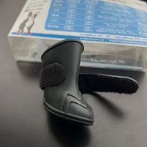 Wellies rubber black boots for your fur baby to be safe and comfortable in the snow, rain and mud. Keep those paws safe. It’s in size XS. See picture for the breeds that can wear these adorable booties that has a Velcro closure to adjust them perfectly around your babies tootsies.