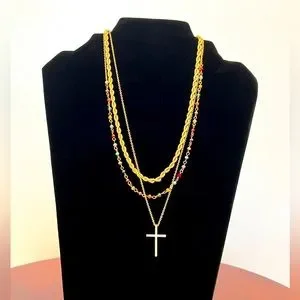 SALE‼️Triple chain- Rope chain, colorful beads and studded cross
