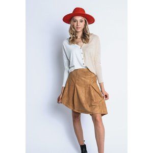 Women's Casual Pleated Suede Solid High Low Midi Skirt Tan Size S,M,L