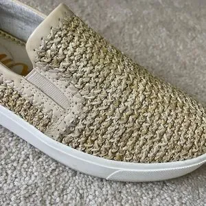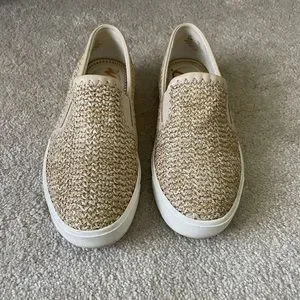 Raffia look Slight shimmer Good condition Comfortable