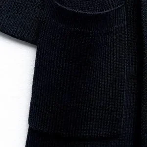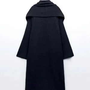 ZARA SCARF COLLAR KNIT COAT : Long sleeve open knit coat with wide scarf style collar. Front patch pockets.