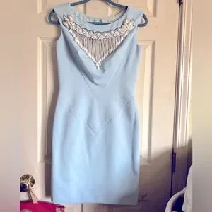 Sydney North Beckman’s vintage baby blue wiggle dress beaded neckline