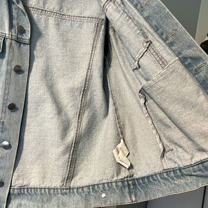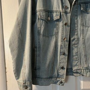 Forever 21 Jean jacket. Like new. Lightly used. I’m a small and this is great for layers underneath. Has four pockets and two inside pockets. Light wash.