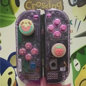 custom joycons - with chrome hot pink buttons & kitty / raspberry joystick cap
