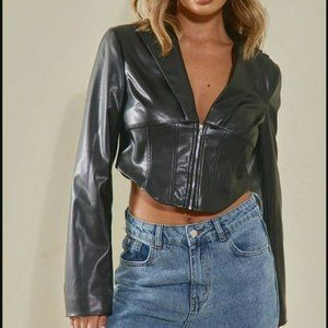 RELISTED PrettyLittleThing Faux Leather Corset Jacket Top Black