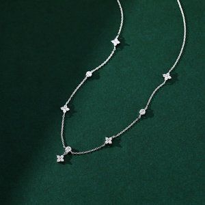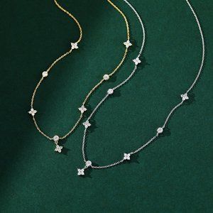 NEW Silver / Gold Inlaid Zircon Four-leaf Flower Chain Necklace