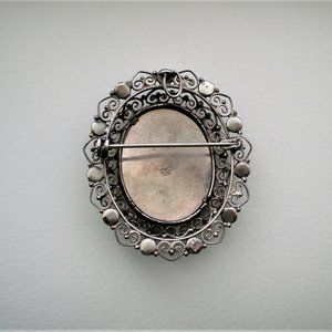 Antique 800 Silver Faux Turquoise Lady Cameo Style Filigree Brooch Pin Pendant