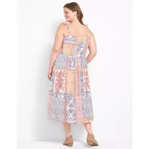 Lane Bryant Patchwork Sweetheart-Neck Tie-Shoulder Midi Dress NWT