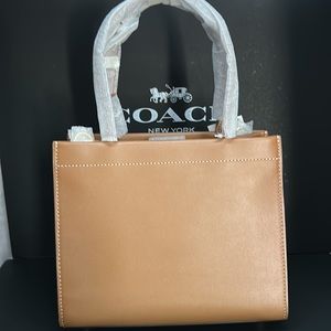 Coach pays homage to legendary New York City artist Tom Wesselmann with this playful, Pop Art-inspired collection. Reimagined for today, this tote is based on the iconic "Cashin Carry" from 1969, a top-handle style by Coach's first lead designer, Bonnie Cashin. With space to hold an iPad mini, this compact 22 is crafted in a mix of our buttery soft glovetanned leather and textured natural pebble leather detailed with a colorful bedside still life. Carry by the top handles or attach the adjustable strap to wear on the shoulder or crossbody.