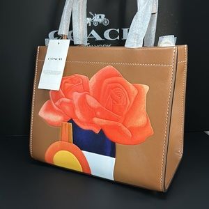 Coach X Tom Wesselmann Cashin Carry Tote 22 Leather Flower Floral ca128 Bag NWT