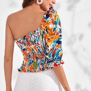 Boho Floral Print One Shoulder Crop Top