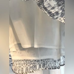 H&M Women’s 12 Mini Dress. Pullover dress with blue and white pattern, elastic waist. Lined. Double keyhole at v neck. Sleeves hit above wrist.