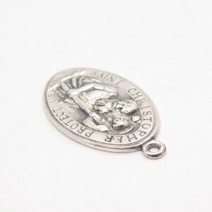 925 Sterling Silver Vintage St. Christopher Religious Oval Pendant