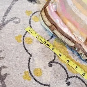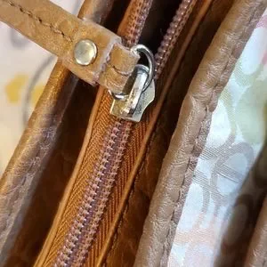 Preowned but like New! any compartments. 2 outside sleeves and Interior has a few. Zipper closure Silver Hardware