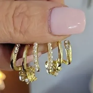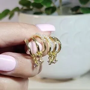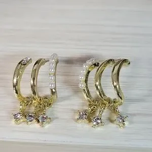 Claw Style Huggies with Faux Pearl, Crystal Dangles, S925
