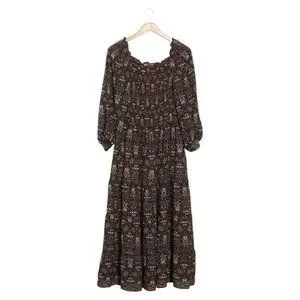 MAX STUDIO Womens Dress Midi Smocked Bodice Crepe Black Wine Size Medium NWT
