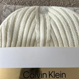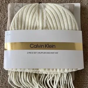 Calvin Klein new Cream color knit hat with matching beige scarf! New in packaging!