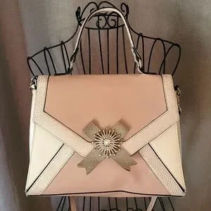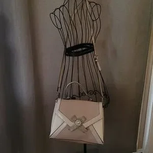 This Aldo bag has a beautiful bling/ jewel / rhinstone embellishments in front. its a blush pink tone. Crossbody strap is removable. The ribbon has separated on the bow but could be glued together. I haven't had time to take it to the local cobbler. super clean inside. pictures reflect any wear. Happy poshing!