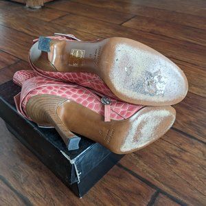 These are a striking pair of ankle booties from Dolce & Gabbana made of genuine crocodile embossed pink polished leather in a style/color they call " St. Cocco Rosa".