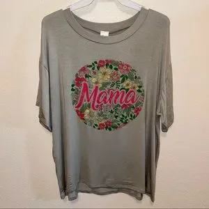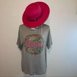 Green & Pink “Mama” Floral Botanical Leaf Graphic Short Sleeve Tee Shirt