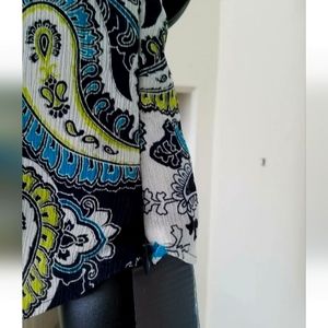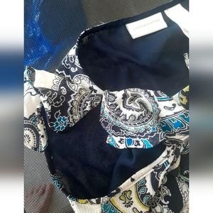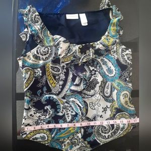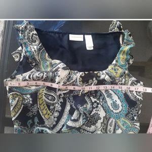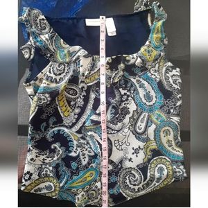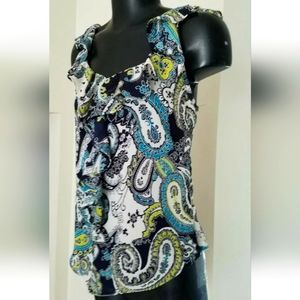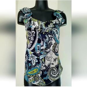 Liz Claiborne Black Blue Ruffle Paisley Cap Sleev Casual Dress Blouse Sz 6 Small