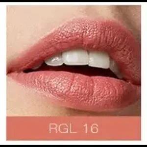 Modern matte finish with a luxurious true velvety texture and feel. Highly pigmented and long lasted. Non-drying and will leave lips looking smooth and soft. Safe plant based pigments. This color, RGL16, is a great nude peach color and is difficult to find in stores.
