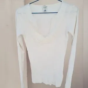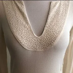 Old navy ivory full sleeves top with beaded deep U neck