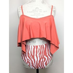 EUC High Waisted Bikini set from Rosewe ❤️ Very cute, wore once, both top and bottom size M, top comes with original cups, cute cold shoulder style top with rust orange zebra/animal print bottom, very flattering! Let me know if you have any questions!