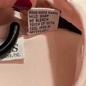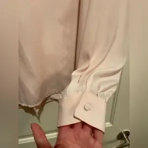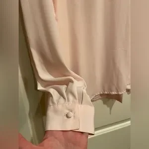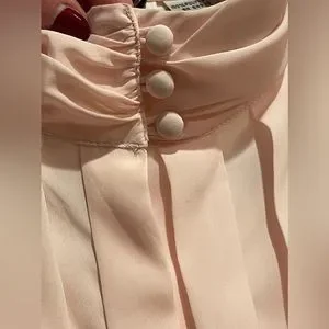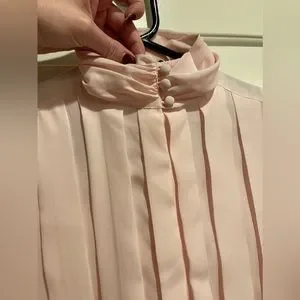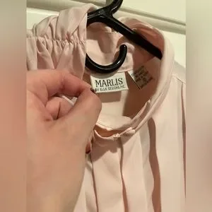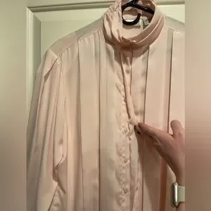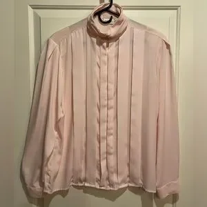 Vintage soft pink blouse with beautiful satin buttons on the collar and wrists. Size 16.