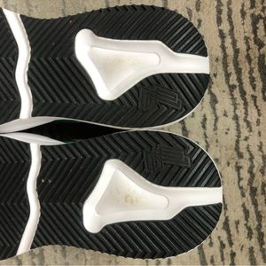 These shoes are in excellent condition. They have been worn a few times, but aren’t worn. There is some folding in the base of the shoe from wear (pictured), but is hardly noticeable. The bottom of the shoe is in excellent condition. No tagged size, but same size as another pair I have that is tagged a 9.
