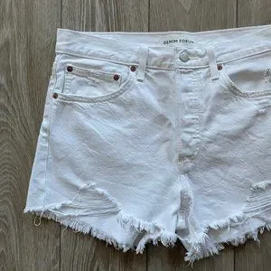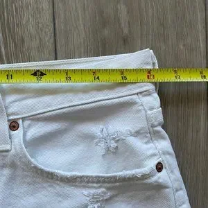 High waisted distressed cutoffs that have a nice and loose fit around the thighs. Excellent condition with no flaws to note. 100% cotton. Size 27. See photos for measurements and details.