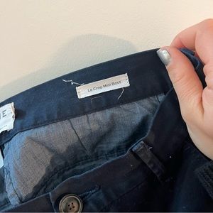 Gently used Frame Le Crop Mini Boot Pants in Navy! Super cute for spring and summer and the mini flare hits right at my ankle (I’m 5’ 6”).