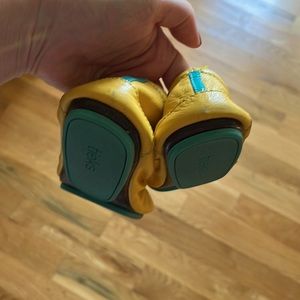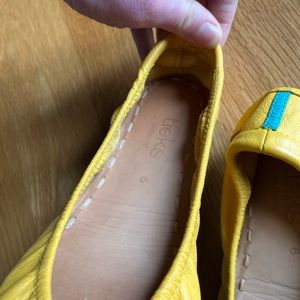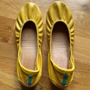 Beautiful yellow Tieks perfect for spring and summer. Worn maybe 5 times. I just don’t reach for them. Very slight scuffing on the toe, as shown in photos. Not noticeable at all when worn. No discoloration or odors. No box or bag.