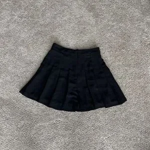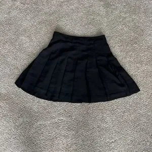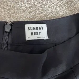 Black Aritzia Sunday Best Mini Skirt is in good condition and previously worn. It is 100% polyester.