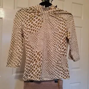 3/4 Beige Brown Round Pattern Blouse Stretchable Maxi Bodycon Semi Formal Tops