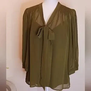 💰BOGO - East 5th Avenue 3/4 sleeve blouse with button front and tie. includes matching camera soles with adjustable straps.