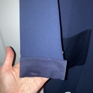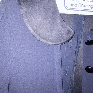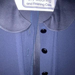 Black LBD. Silk collar and pockets, turned up sleeves also silk. Freshly dry cleaned. Button up dress, missing a button.