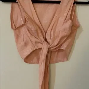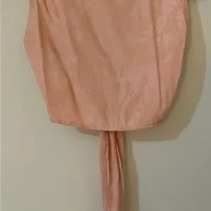 A little Orange color with floral print, with front eye hook closure and tie. Size medium. Fits a size 28-29 waist. Like brand new condition