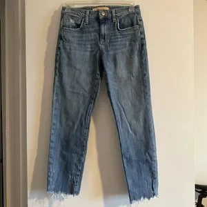 Joe’s Jeans Blue The Smith Mid Rise Straight Crop Distressed Hem Jeans Size 24