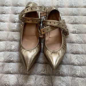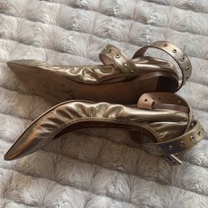 These gold ‘Love Latch’ flats will instantly elevate any outfit and are effortless to wear.