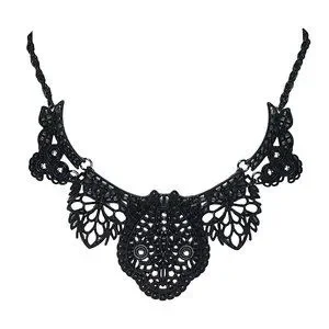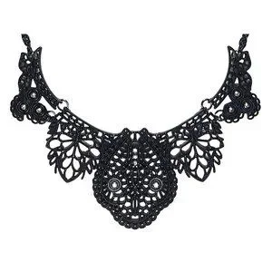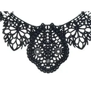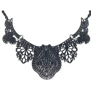 • 3 metal panels form the bib portion of the necklace, about 5 inches wide by 3.5 inches tall.