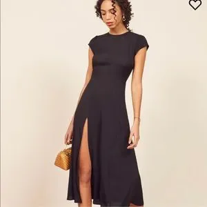 Not too mini or maxi. This is a midi length dress with a high slit, a back cut out, and cap sleeves. The Gavin is fitted in the bodice and waist with a relaxed fitting skirt. It gives you a pretty good balance of comfort and shape.