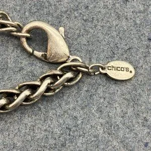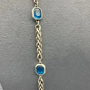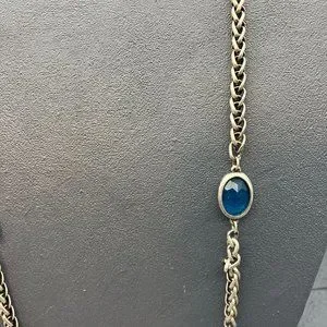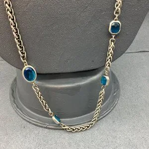 Chicos Long Necklace As Is Silver Chain Teal Blue Faceted Bezel Bead Retro BoHo