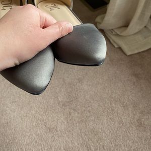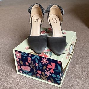 Journee Collection women’s Tanzi pointed toe stiletto heels. Size 6 1/2. Fits true to size. Formal charcoal grey satin pumps with a bow on the back. Very elegant. I had wore them in a wedding as my bridesmaid shoes. I love them ❤️ but I need to downsize my wardrobe.