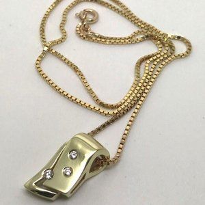 14k Yellow Gold 3 Stone Round Brilliant Diamonds Pendant & Chain