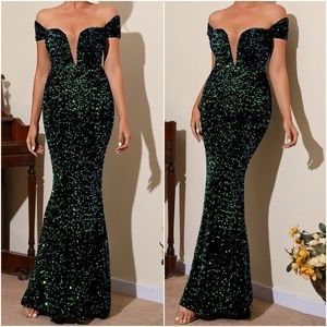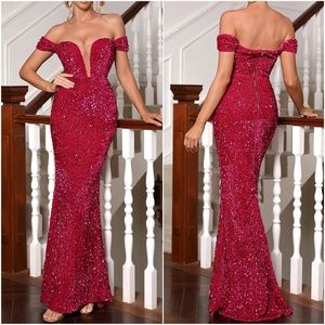 Luxurious Off Shoulder Sequin Evening Formal Wedding Dress